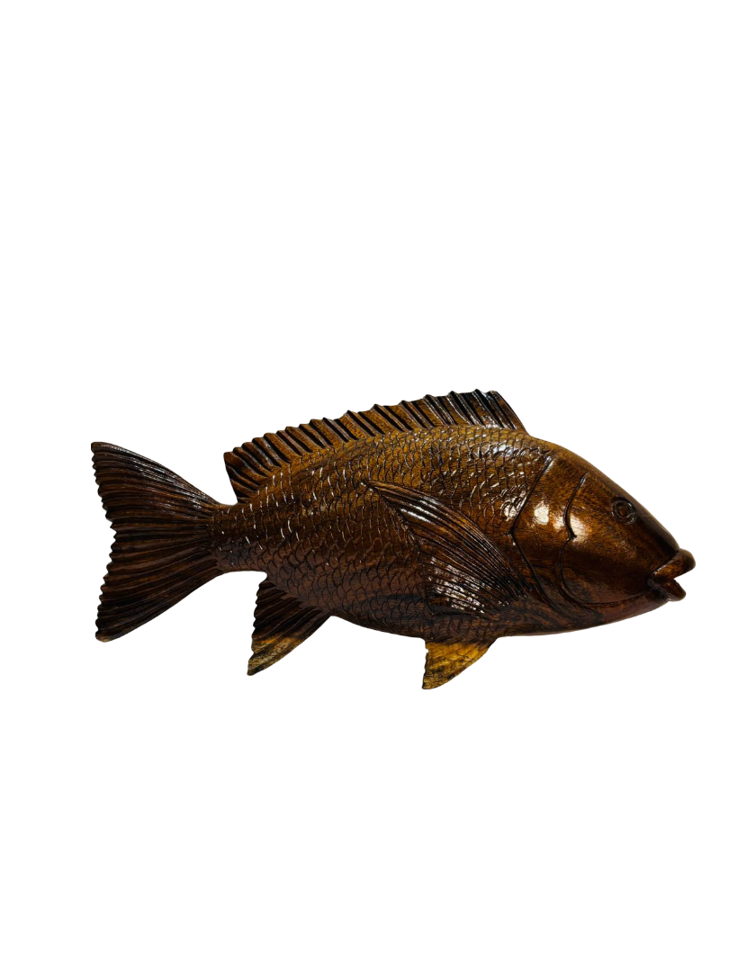 red snapper wooden sculpture with stand