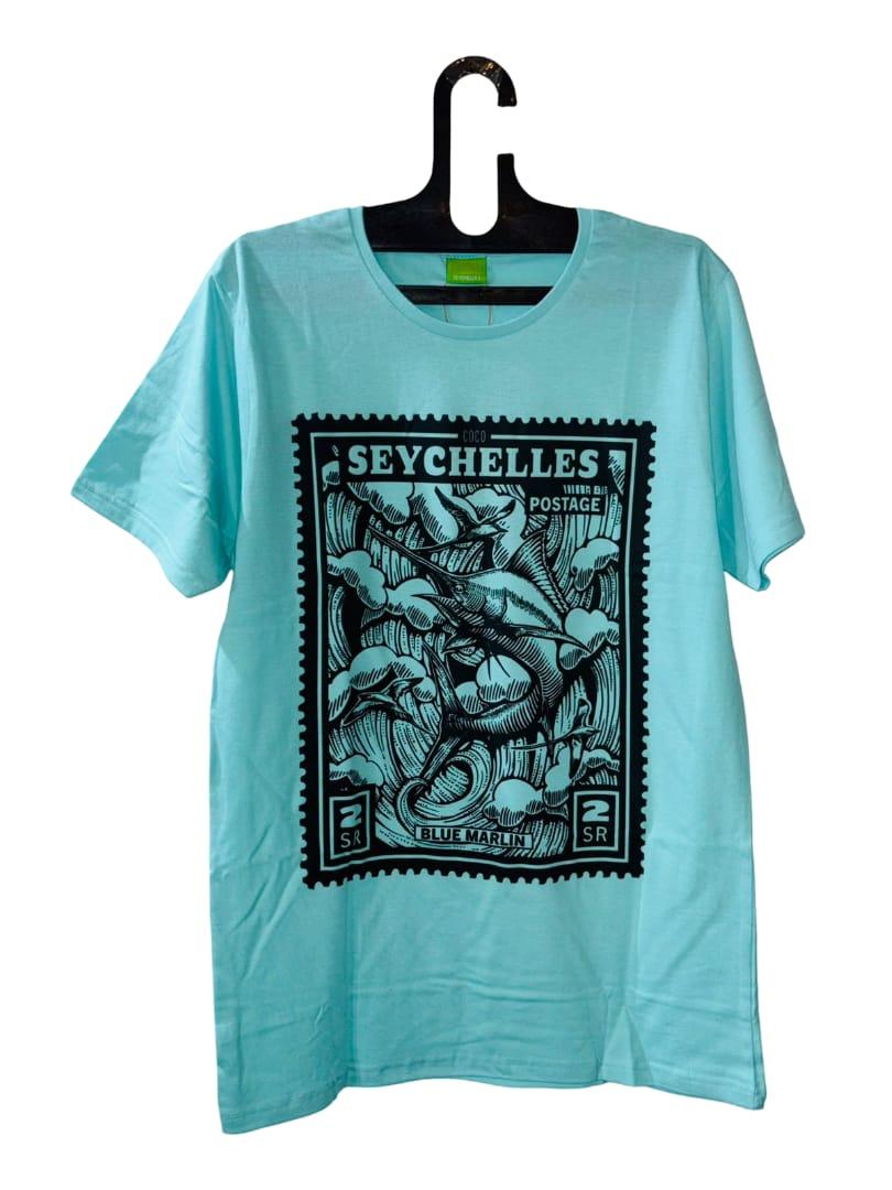 TSHIRT ADULT- MARLIN VINTAGE STAMP S BLUE